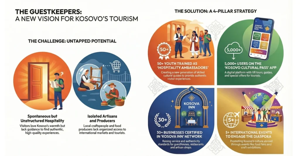 Në thelb të këtij projekti qëndron një vizion i thjeshtë por transformues: Të kthejmë mikpritjen tradicionale shqiptare në një standard profesional të turizmit kulturor.