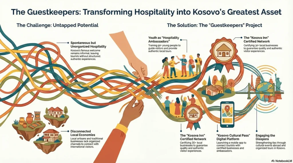 Një iniciativë e dedikuar për promovimin e trashëgimisë, kulturës dhe mikpritjes së Kosovës. Duke lidhur vizitorët me destinacionet, historitë dhe njerëzit që e bëjnë vendin tonë unik.